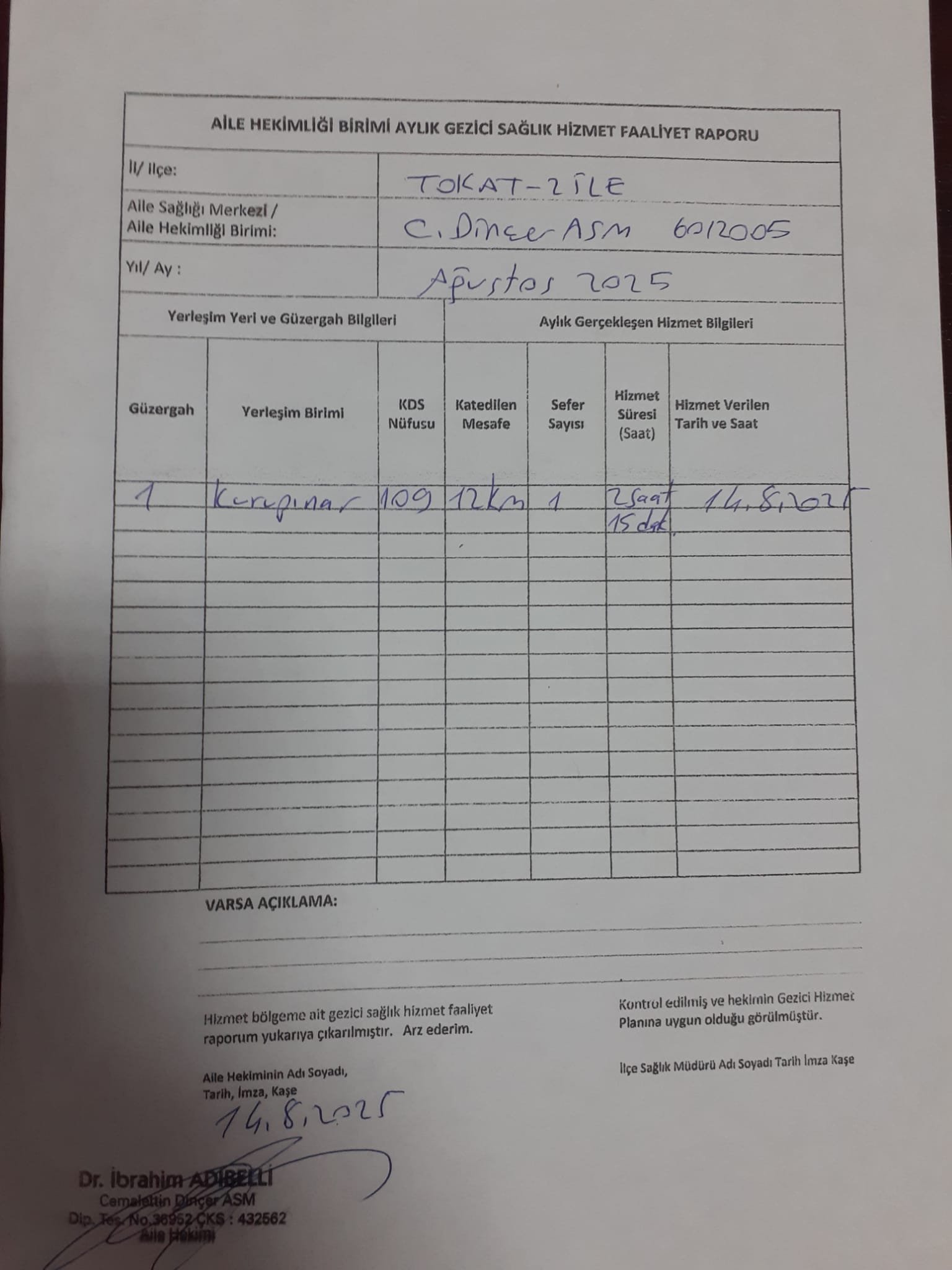 Gezici Hizmet Günümüz : Her ayın 2. Perşembe günleridir.